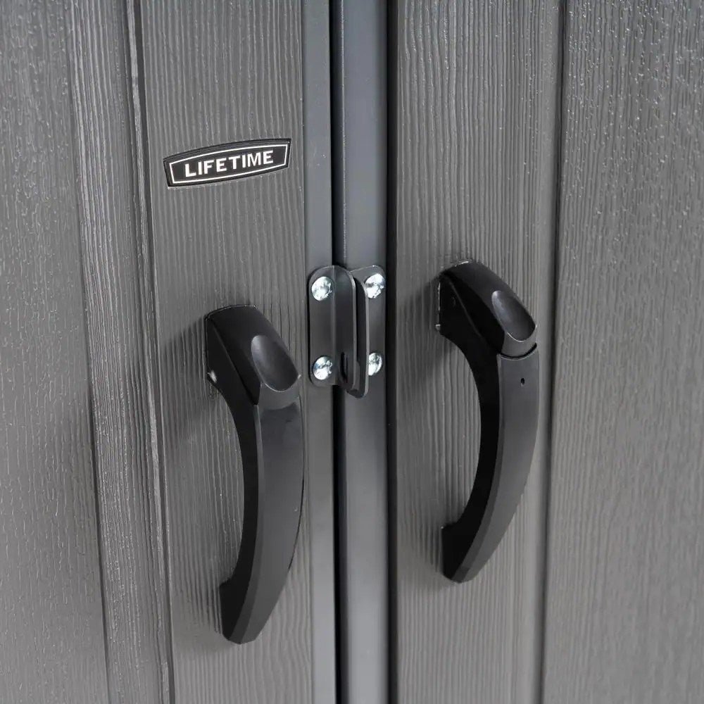 Make organization a breeze and declutter your garage with the right storage solution. The Lifetime 8 foot by 10 foot Shed is a stylish storage space that is strong, secure, and easy to maintain. The Double Wall System (DWS) and steel-reinforcement provide incredible strength for long-lasting performance. The UV-protected and weather-resistant build combined with the excellent rain and snow drainage allows this shed to effectively withstand the elements. The steel-reinforced, lockable doors (lock not included) will give you excellent security for your belongings. The height adjustable shelf gives you more options for storing items throughout the shed. The panel skylights and window offer excellent interior lighting. Free up space in your garage and better organize your tools and equipment with a Lifetime 8 Foot by 10 Foot Shed.