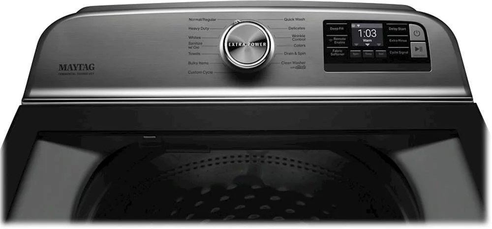 The Quick Wash cycle cleans small, lightly soiled loads in 30 minutes with extra high spin speeds, pairing nicely with the Quick Dry cycle on matching Maytag dryers to get your clothes ready in no time.
